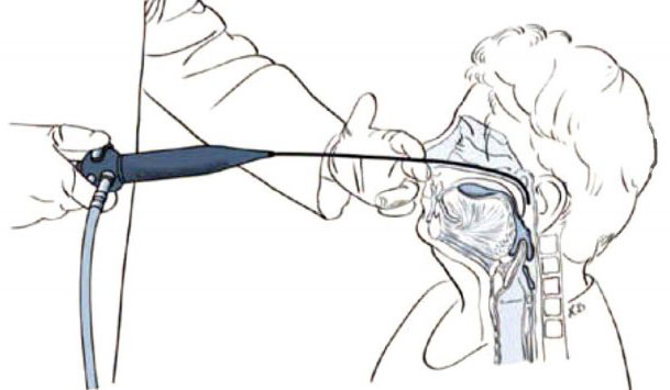 Bei der FEES handelt es sich um eine indirekte Laryngoskopie mit flexibler Optik, die transnasal mit einer Endoskopkamera durchgeführt wird.